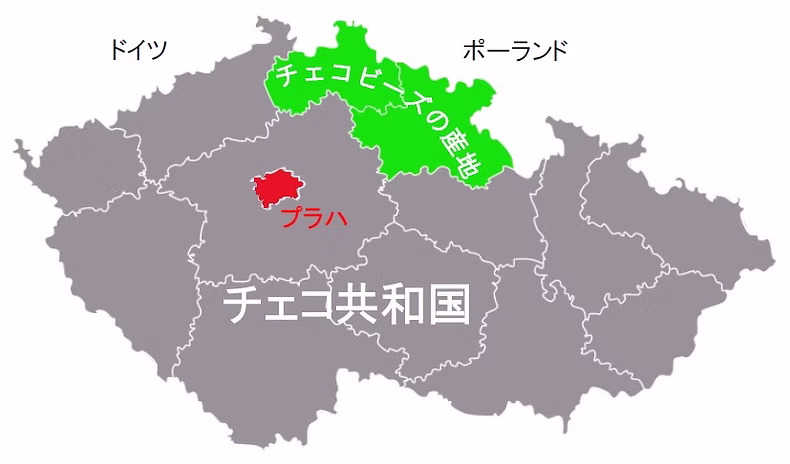 北ボヘミア地方では9世紀頃からすでにガラス製品が作られていたという記録があります。「Jablonec nad Nisou(ヤブロネツ・ナド・ニソウ)が位置する北ボヘミア地方は、”カリガラス”と呼ばれる”透明度が高く、硬質で、そして軽い”ボヘミアンガラスの源となる酸化鉄の含有量が微少な珪砂や、酸化カリウムの抽出や加熱に必要な木材などの天然資源に恵まれていたことから、山あいの小さな町や村の主な収入源はガラス製造業でした。